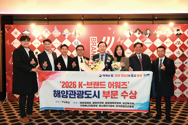 통영시는 지난달 25일 서울 더플라자 호텔 그랜드볼룸에서 열린 「2026 K-브랜드 어워즈」 시상식에서 ‘K-도시 해양관광도시’ 부문 수상의 영예를 안았다.K-브랜드 어워즈는 대한민국을 대표하는 우수 브랜드를 발굴하고, 산업 경쟁력 강화와 국가 경제 발전에 기여한 기관 및 기업을 선정해 시상하는 행사다.이번 행사는 TV조선이 주최하고 기획재정부, 행정안전부, 문화체육관광부 등 7개 기관이 후원했다.통영시는 지난해 국내 최초 복합해양레저관광도시 조성사업 공모에 선정돼 총사업비 1조 1,400억 원(민자 포함)을 확보했다. 또한 국내