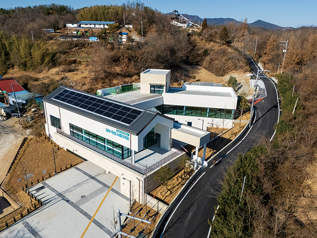 산세·어린이 공원 염두에 두고 건축골짜기에 끊긴 흐름 복원해 조망 확보투명한 매스로 내·외부 시선으로 연결1층 마당·움직임·운동 공간으로 구성2층은 식당·카페·행사 등 다목적 활용남부하동노인복지관은 진교면 소재지에서 119안전센터 쪽으로 민다리문화공원의 초입에 위치한다. 노인복지관이기는 하나 공원 내 어린이 공원도 있어 서로 공유하고 연계됐으면 했다. 대지는 골짜기 지형에 있다. 좌우측으로 산의 능선이 이어지고 공원 안쪽으로 들어감에 따라 점점 상승하는 지형이다. 건축은 좌우 산세의 흐름을 연결하는 두 개의 매스를 배치하는 것으로