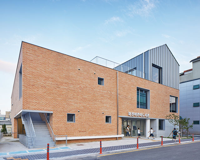 폐교된 ‘김해 주촌초’ 리모델링‘벽면 서가’ 상징성 담아 시공도서관 용도변경 후 2019년 개관기존 체육관·교사동 공간 활용레고·공룡방 등 책 놀이공간 구성문화체험 강좌실·북카페도 갖춰최근 우리나라는 급격한 출산율 감소와 도심의 변화에 따른 인구이동으로 인하여 학교가 이전되고, 폐교되는 사례가 늘어나고 있다. 김해지혜의바다도서관은 오랜 역사를 지닌 주촌초등학교(1931년 개교)가 이전되고 기존 건물을 폐교함에 따라 초등학교를 도서관으로 ‘용도변경’하고, ‘리모델링’을 통해 새로운 독서문화 공간을 창출하는 프로젝트이다. 설계 의도건축