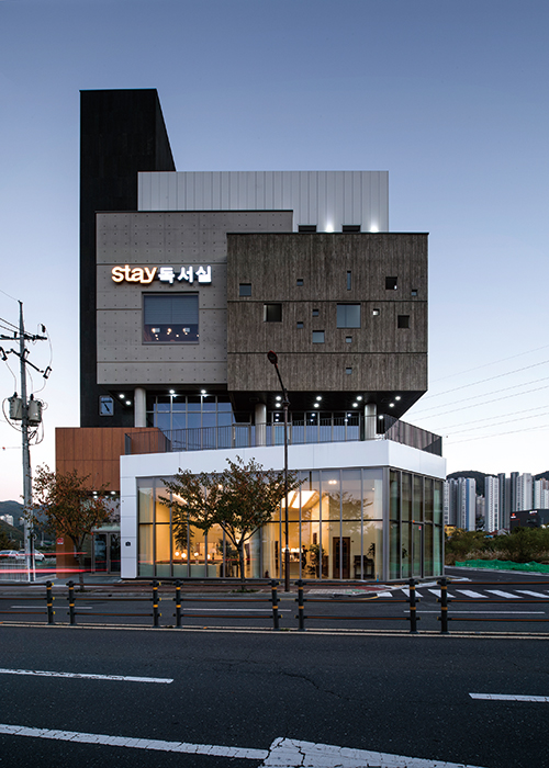 공간과 빛 조절 위해 다양한 켜 사용진입·머무름 공간 정갈한 분위기 연출2층 테라스, 4·5층 촬영 스튜디오 등결혼 앞둔 예비부부 설렘·기쁨 담아거제시청에서 멀지 않은 곳에 현장이 있다. 한때는 한가롭고 여유롭던 농촌 마을이었을 것으로 짐작된다.거제 상동은 택지 개발로 만들어진 도시 공간이다. 지리적으로는 서쪽으로 고현동, 동쪽으로는 옥포와 장승포와 접하고, 동쪽 끝에는 거제의 상징적인 존재인 한화오션 옥포조선소가 있다. 서쪽에는 거제 포로수용소가 이웃하고, 계룡산이 병풍처럼 마을을 감싸고 있다. 북쪽으로는 가덕도 신공항으로 향하는
