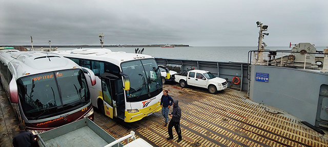 푼타아레나스는 칠레 땅이지만 남부 해안의 험준한 지형 때문에 육로로 갈 수 없는 곳이다. 칠레의 다른 지역에서 육로를 통해 푼타아레나스로 오려면 아르헨티나 영토를 지나거나 비행기 또는 배를 타야 한다. 우수아이아는 세계 가장 남쪽에 있는 세상 끝 마을이고, 푼타아레나스는 아메리카 대륙의 최남단에 있는 땅끝마을이다. 우리나라로 이야기하자면, 우수아이아는 마라도, 푼타아레나스는 해남에 해당한다고 이해하면 된다. 구글 지도를 보니, 바다 위에 파란 점이 깜빡이고 있다. 우리는 지금 마젤란 해협을 건너고 있다. 배가 크긴 한가 보다. 비가 오고 바람이 부는데 배의 움직임이 크게 느껴지지 않는다.