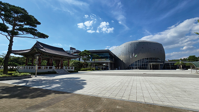 전국 설계 공모를 통해 다울건축사사무소 작품이 선정됐고, 2013년에 설계를 시작해 2015년에 완공됐는데 거대한 수평적인 처마는 새의 날개처럼 가볍게 느껴지고, 딱딱한 주변 아파트들 사이에 육중한 무게의 지붕이 설계자가 의도한 ‘가야의 문’을 상징하고도 남을 듯하다.