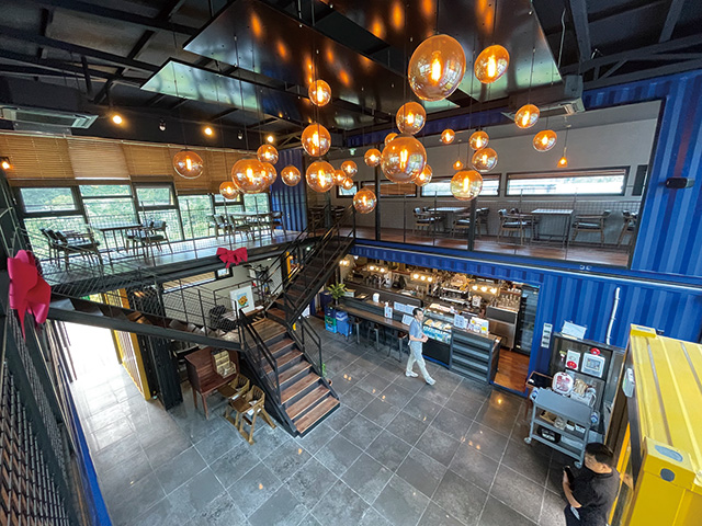 2층은 넓은 창을 두어 자연을 느낄 수 있게 배려하였고 대화에 집중할 수 있도록 일렬로 공간을 확보함과 동시에 1층을 내려다볼 수 있도록 중앙을 비워두어 공간감을 확보하였다. 2층 앞면 쪽으로 발코니를 돌출시키고 측면에 컨테이너 문을 설치해 컨테이너하우스라는 건물의 정체성을 강조하고 입체적인 공간이 될 수 있도록 하였다.