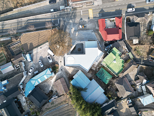 이 프로젝트는 단순한 형태 이상의 건축적 역할을 수행한다. 기능적 건축을 넘어 지역성과 맥락, 자연과의 공존, 그리고 건축가의 의식적 선택이 긴밀하게 맞물려 형성된 결과물이다. 대지로는 각이 지고 바르지 못한 장소가 지닌 ‘풍경의 고유함’을 읽어내고, 그것을 거스르지 않으며, 되레 품을 수 있는 건축을 제안했다.