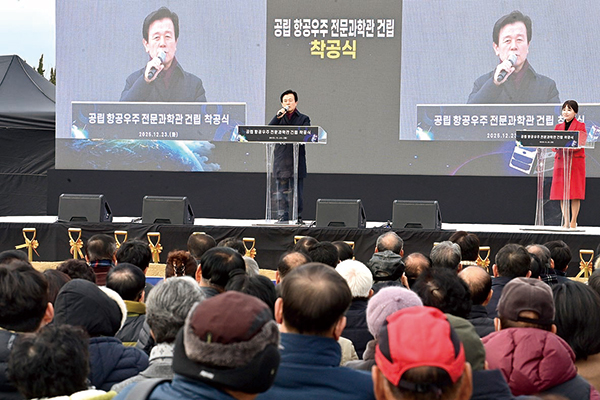 진주시는 지난달 23일 망경동 446-19번지 일원(망경동 지식산업센터 앞)에서 ‘진주시 공립 항공우주 전문과학관 건립공사 착공식’을 개최했다.