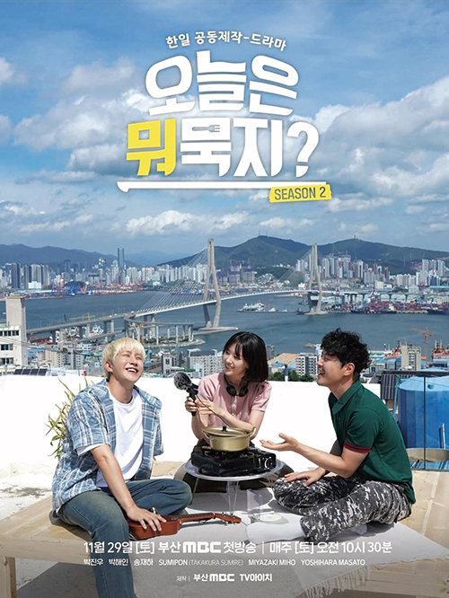‘오늘은 뭐묵지 시즌2’는 부산MBC와 일본 TV아이치가 공동 제작한 한·일 합작 미니드라마로, 회차당 30분 분량의 총 10부작으로 편성됐다. 이 작품은 지난 11월 19일 방송미디어통신위원회 주관으로 개최된 2025 방송 공동제작 국제 콘퍼런스(IBCC)에서 ‘해외 우수 공동제작 부문 대상’을 수상한 작품이다. 인기 아이돌 그룹 아스트로의 진진과 일본 배우 요시하라 마사토가 주연을 맡아 한국과 일본의 주요 지역을 배경으로 다양한 아르바이트와 지역 체험을 통해 음식과 일상의 매력을 전하며 공감과 위로를 담아냈다.