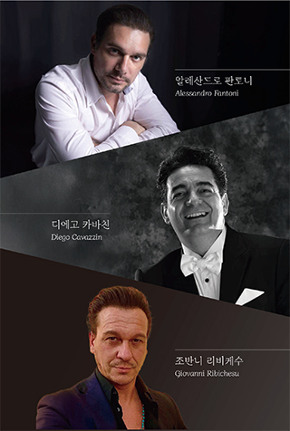 오페라의 본 고장 이탈리아에서 온 세 테너의 폭발적 에너지와 깊은 표현력으로 완성되는 압도적 무대가 관객에게 잊지 못할 감동을 전달합니다. 섬세한 감성과 힘을 겸비한 알레산드로 판토니(Alessandro Fantoni)드라마틱한 에너지로 무대를 압도하는 디에고 카바친(Diego Cavazzin)감미로운 울림으로 마음을 사로잡는 조반니 리비케수(Giovanni Ribichesu) 등 세 테너의 강한 기운으로 고품격 공연을 선보입니다.
