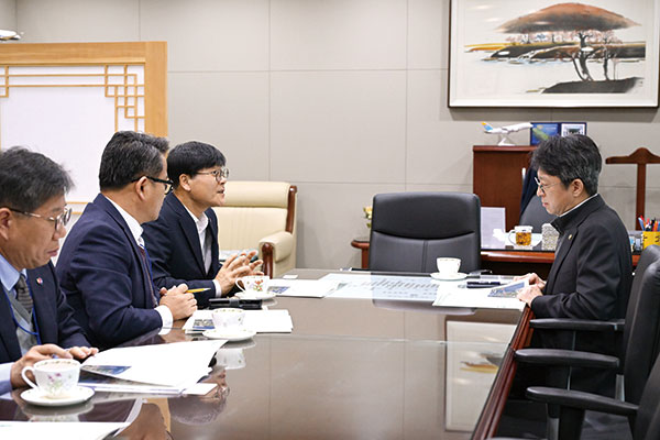 변광용 거제시장은 지난달 26일 홍지선 국토부 제2차관을 만나 거제~가덕도신공항 연결 철도의 제5차 국가철도망 구축계획 반영을 촉구하는 서명부를 전달했다.